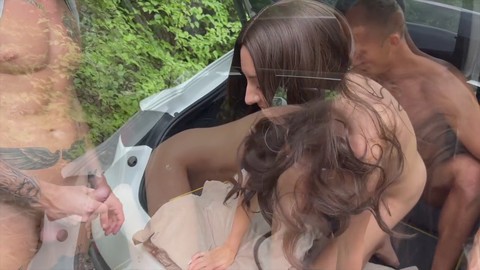Street teen Lina Fitness gives a stranger a memorable deep throat in the car