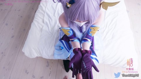Japanese cosplay, japanese footjob, oil handjob