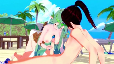 Beach sex, eating pussy, one piece hentai