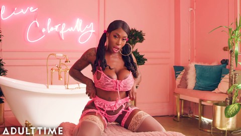 Ebony star milf takes it from a female pov with her big butt