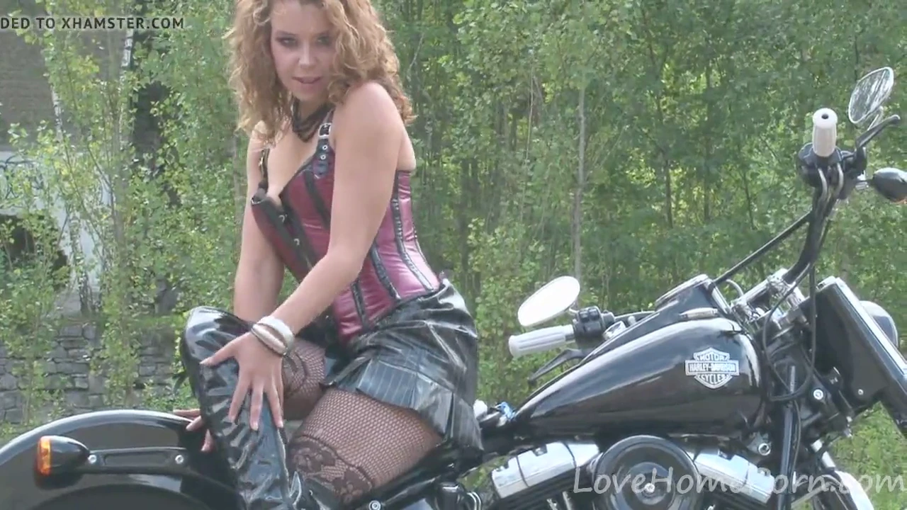 Verspielte Brünette genießt das neue Fahrzeug ihres Freundes.